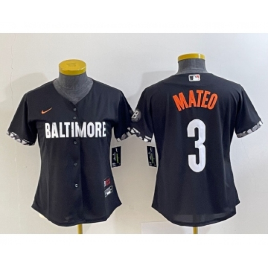 >Women's Baltimore Orioles #3 Jorge Mateo Black 2023 City Connect Cool Base Stitched Jersey 1