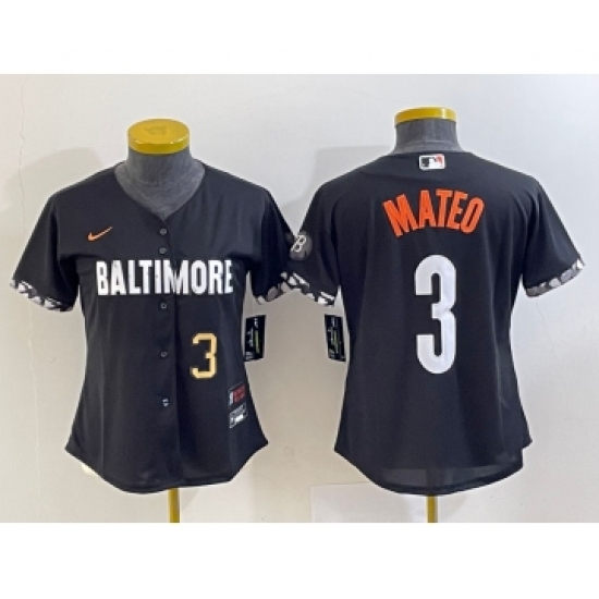 >Women's Baltimore Orioles #3 Jorge Mateo Number Black 2023 City Connect Cool Base Stitched Jersey 1