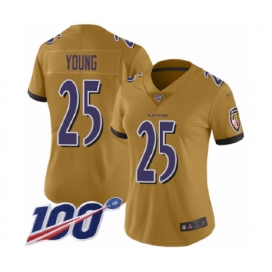 Women's Baltimore Ravens #25 Tavon Young Limited Gold Inverted Legend 100th Season Football Jersey