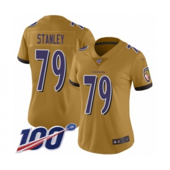 >Women's Baltimore Ravens #79 Ronnie Stanley Limited Gold Inverted Legend 100th Season Football Jersey