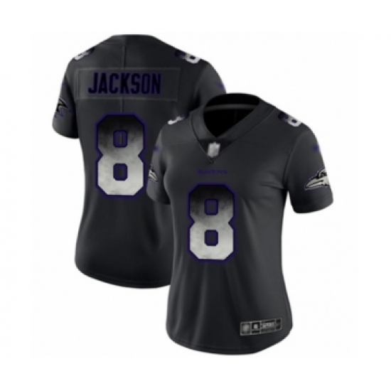 Women's Baltimore Ravens #8 Lamar Jackson Limited Black Smoke Fashion Football Jersey