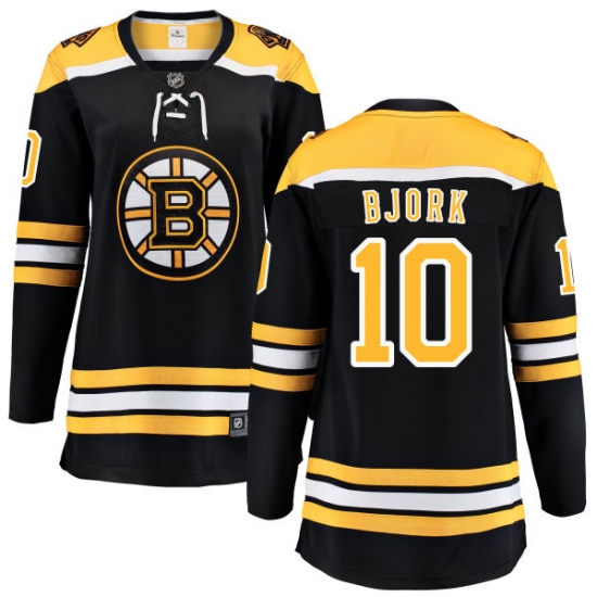 Home>NHL>Boston Bruins>Anders Bjork>Women's Boston Bruins #10 Anders Bjork Authentic Black Home Fanatics Branded Breakaway NHL Jersey