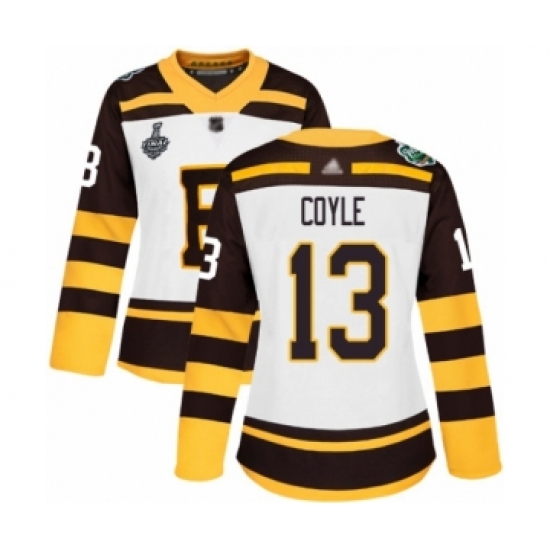Women's Boston Bruins #13 Charlie Coyle Authentic White Winter Classic 2019 Stanley Cup Final Bound Hockey Jersey