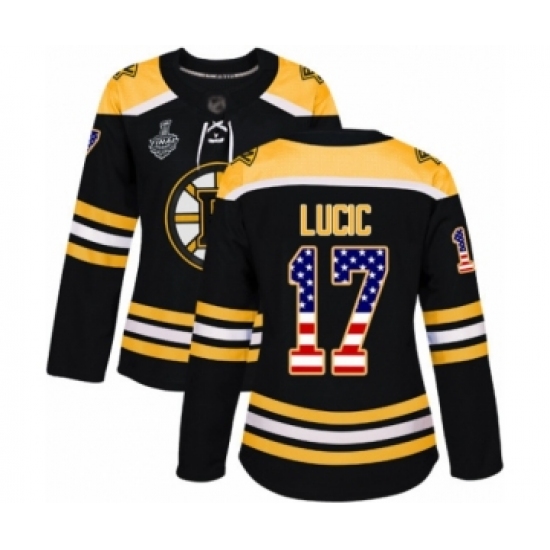 Women's Boston Bruins #17 Milan Lucic Authentic Black USA Flag Fashion 2019 Stanley Cup Final Bound Hockey Jersey