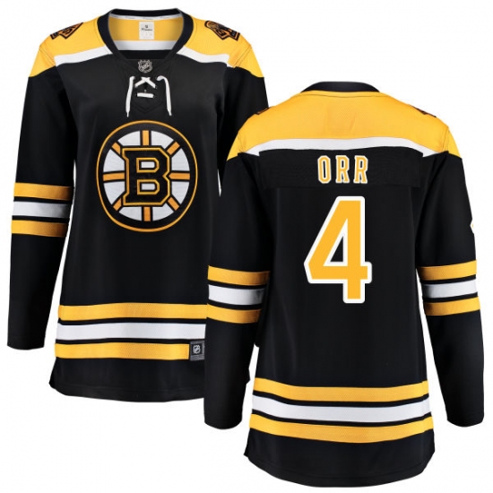 Home>NHL>Boston Bruins>Bobby Orr>Women's Boston Bruins #4 Bobby Orr Authentic Black Home Fanatics Branded Breakaway NHL Jersey