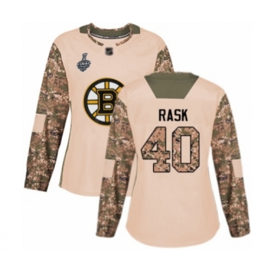 Women's Boston Bruins #40 Tuukka Rask Authentic Camo Veterans Day Practice 2019 Stanley Cup Final Bound Hockey Jersey