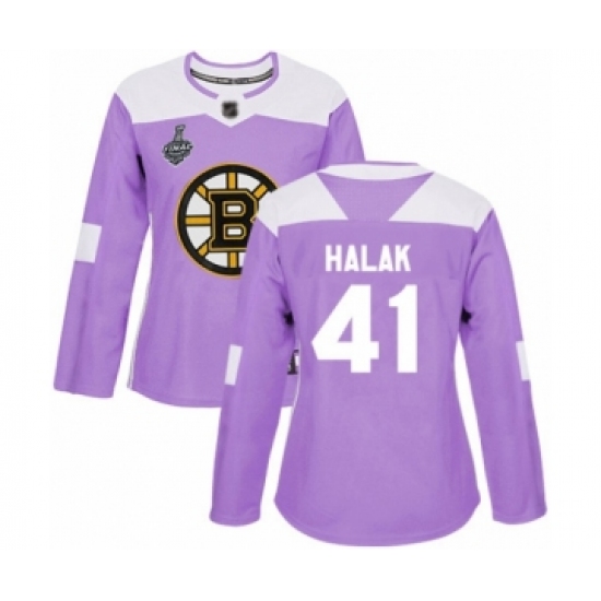 >Women's Boston Bruins #41 Jaroslav Halak Authentic Purple Fights Cancer Practice 2019 Stanley Cup Final Bound Hockey Jersey