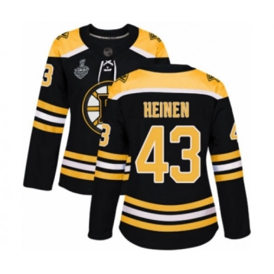>Women's Boston Bruins #43 Danton Heinen Authentic Black Home 2019 Stanley Cup Final Bound Hockey Jersey
