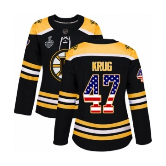 Women's Boston Bruins #47 Torey Krug Authentic Black USA Flag Fashion 2019 Stanley Cup Final Bound Hockey Jersey