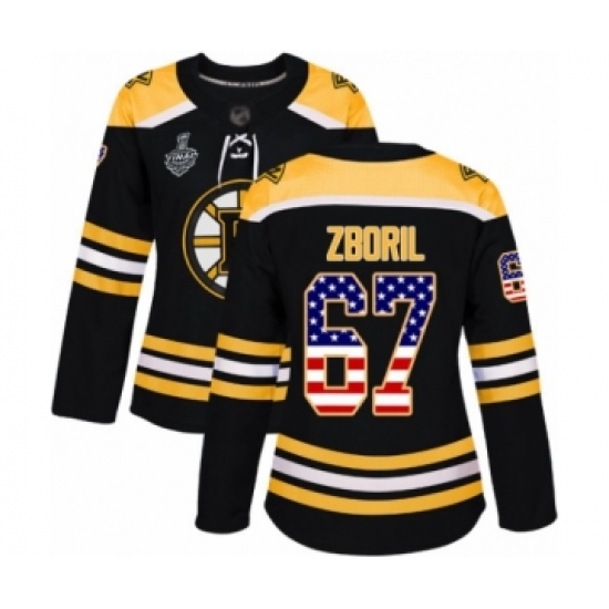 >Women's Boston Bruins #67 Jakub Zboril Authentic Black USA Flag Fashion 2019 Stanley Cup Final Bound Hockey Jersey