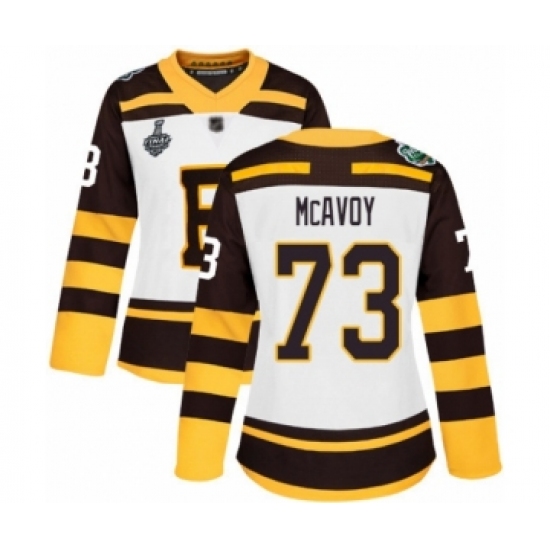 >Women's Boston Bruins #73 Charlie McAvoy Authentic White Winter Classic 2019 Stanley Cup Final Bound Hockey Jersey