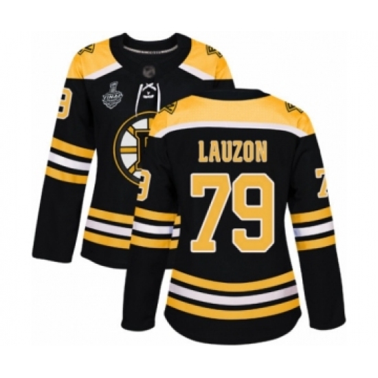 Women's Boston Bruins #79 Jeremy Lauzon Authentic Black Home 2019 Stanley Cup Final Bound Hockey Jersey