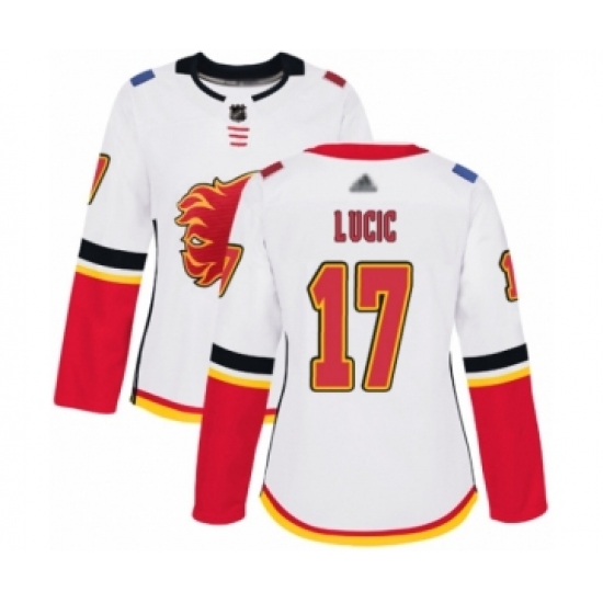 Women's Calgary Flames #17 Milan Lucic Authentic White Away Hockey Jersey