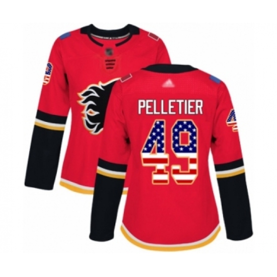 >Women's Calgary Flames #49 Jakob Pelletier Authentic Red USA Flag Fashion Hockey Jersey