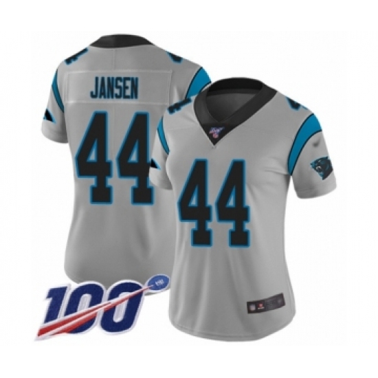 >Women's Carolina Panthers #44 J.J. Jansen Silver Inverted Legend Limited 100th Season Football Jersey