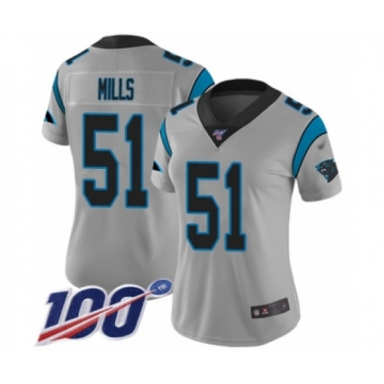 Women's Carolina Panthers #51 Sam Mills Silver Inverted Legend Limited 100th Season Football Jersey