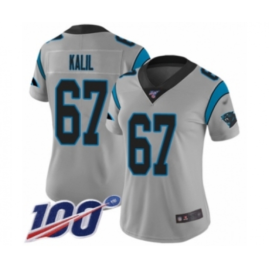 Women's Carolina Panthers #67 Ryan Kalil Silver Inverted Legend Limited 100th Season Football Jersey
