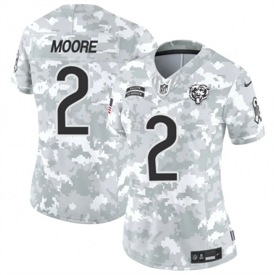 >Women's Chicago Bears #2 DJ Moore 2024 F.U.S.E Arctic Camo Salute To Service Limited Stitched Football Jersey(Run Small)