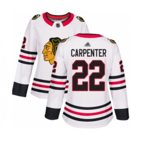 Women's Chicago Blackhawks #22 Ryan Carpenter Authentic White Away Hockey Jersey