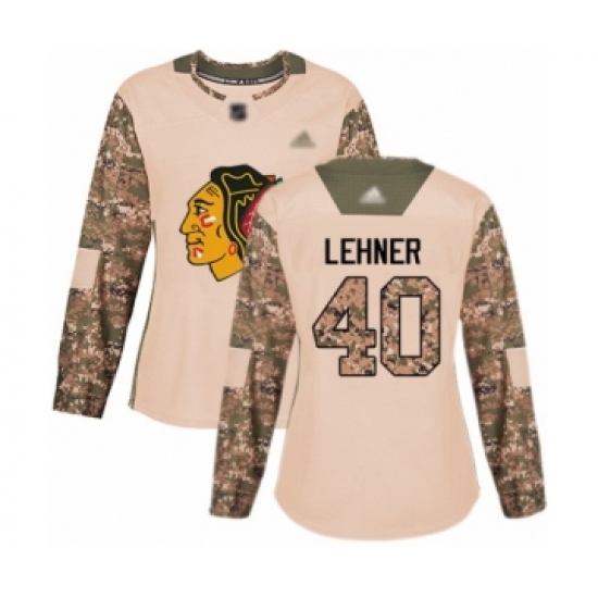 >Women's Chicago Blackhawks #40 Robin Lehner Authentic Camo Veterans Day Practice Hockey Jersey
