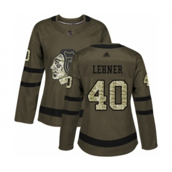 >Women's Chicago Blackhawks #40 Robin Lehner Authentic Green Salute to Service Hockey Jersey