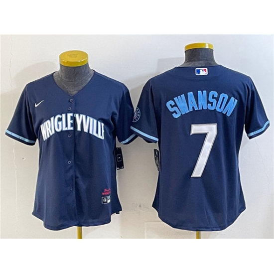 >Women's Chicago Cubs #7 Dansby Swanson Navy City Connect Stitched Jersey