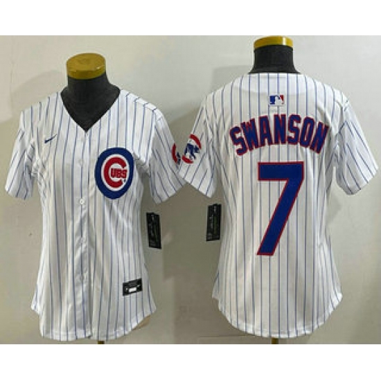 >Women's Chicago Cubs #7 Dansby Swanson White Limited Stitched Jersey