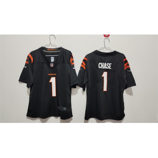 >Women's Cincinnati Bengals #1 Ja'Marr Chase Black Vapor Football Stitched Jersey(Run Small)