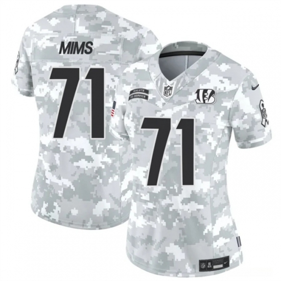 >Women's Cincinnati Bengals #71 Amarius Mims 2024 F.U.S.E Arctic Camo Salute To Service Limited Stitched Football Jersey(Run Small)