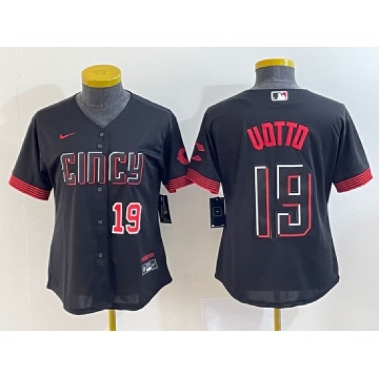 Women's Cincinnati Reds #19 Joey Votto Black 2023 City Connect Cool Base Stitched Jersey