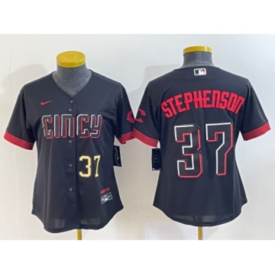 >Women's Cincinnati Reds #37 Tyler Stephenson Number Black 2023 City Connect Cool Base Stitched Jersey1