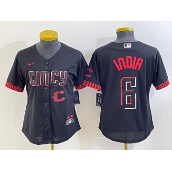 >Women's Cincinnati Reds #6 Jonathan India Black 2023 City Connect Cool Base Stitched Jersey
