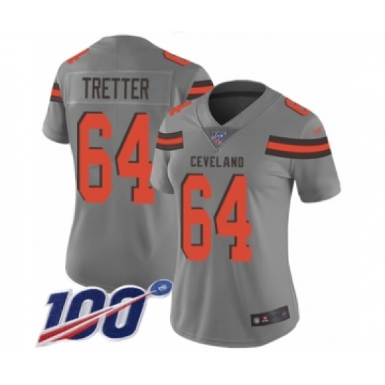 >Women's Cleveland Browns #64 JC Tretter Limited Gray Inverted Legend 100th Season Football Jersey