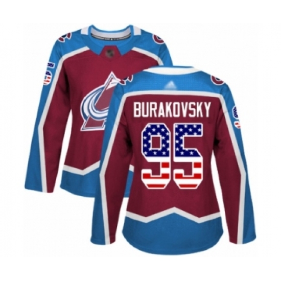 Women's Colorado Avalanche #95 Andre Burakovsky Authentic Burgundy Red USA Flag Fashion Hockey Jersey