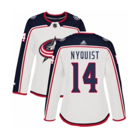 >Women's Columbus Blue Jackets #14 Gustav Nyquist Authentic White Away Hockey Jersey