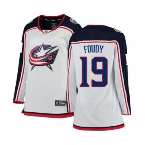 Women's Columbus Blue Jackets #19 Liam Foudy Authentic White Away Fanatics Branded Breakaway NHL Jersey