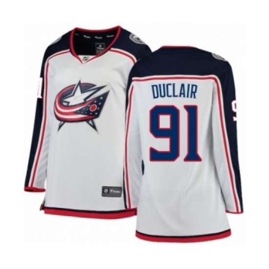 >Women's Columbus Blue Jackets #91 Anthony Duclair Authentic White Away Fanatics Branded Breakaway NHL Jersey