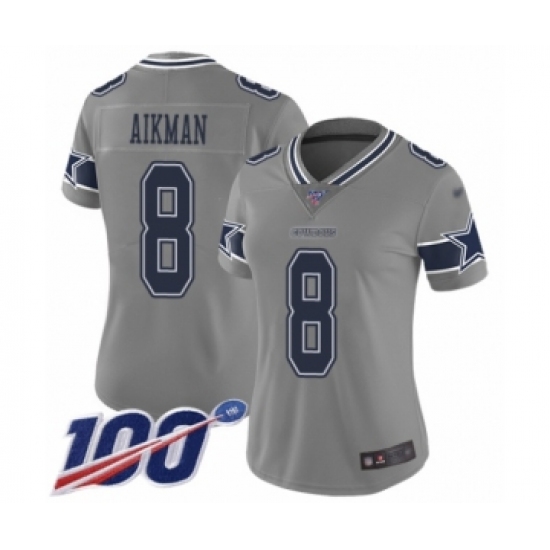 >Women's Dallas Cowboys #8 Troy Aikman Limited Gray Inverted Legend 100th Season Football Jersey