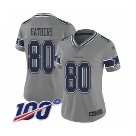 >Women's Dallas Cowboys #80 Rico Gathers Limited Gray Inverted Legend 100th Season Football Jersey