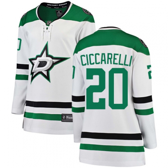 Home>NHL>Dallas Stars>Dino Ciccarelli>Women's Dallas Stars #20 Dino Ciccarelli Authentic White Away Fanatics Branded Breakaway NHL Jersey