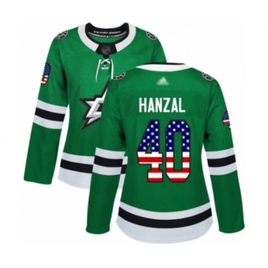 Women's Dallas Stars #40 Martin Hanzal Authentic Green USA Flag Fashion Hockey Jersey