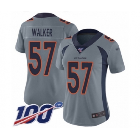 >Women's Denver Broncos #57 Demarcus Walker Limited Silver Inverted Legend 100th Season Football Jersey