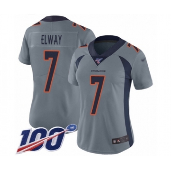 Women's Denver Broncos #7 John Elway Limited Silver Inverted Legend 100th Season Football Jersey