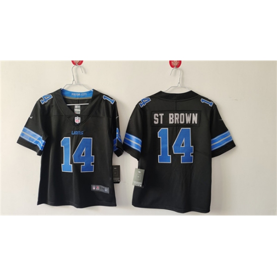 >Women's Detroit Lions #14 Amon-Ra St. Brown Black Vapor Football Stitched Jersey(Run Smaller)