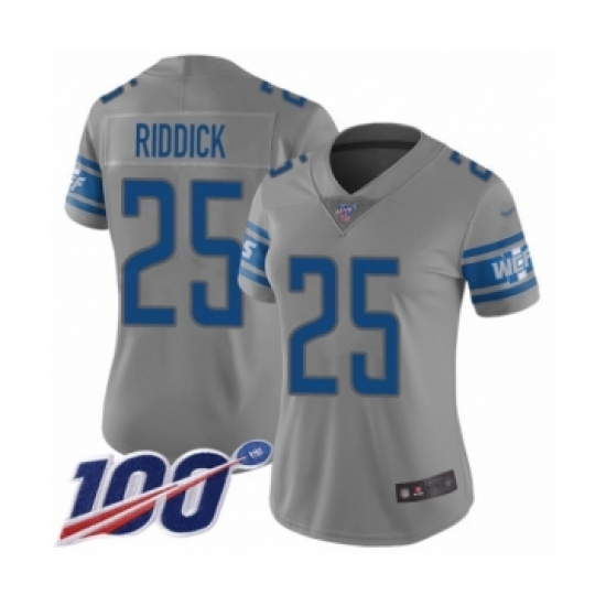 >Women's Detroit Lions #25 Theo Riddick Limited Gray Inverted Legend 100th Season Football Jersey