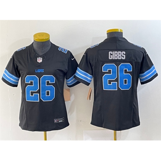 >Women's Detroit Lions #26 Jahmyr Gibbs Black 2024 F.U.S.E. 2nd Alternate Vapor Limited Football Stitched Jersey