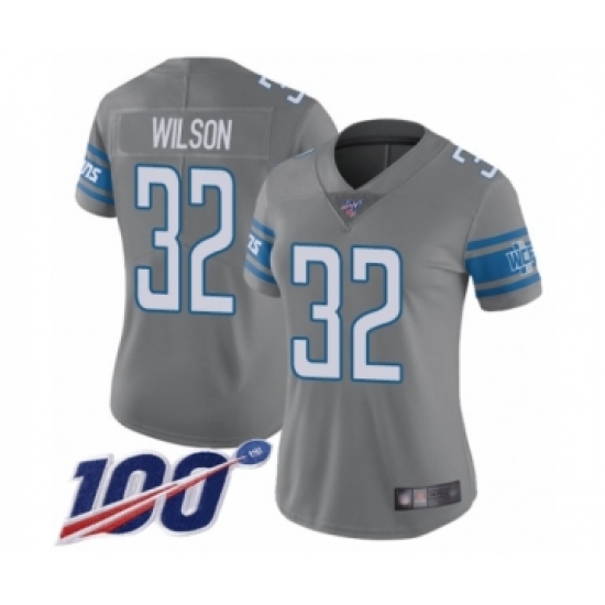 >Women's Detroit Lions #32 Tavon Wilson Limited Steel Rush Vapor Untouchable 100th Season Football Jersey