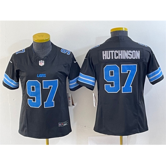 >Women's Detroit Lions #97 Aidan Hutchinson Black 2024 F.U.S.E. 2nd Alternate Vapor Limited Football Stitched Jersey