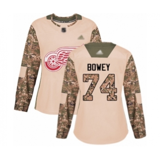 >Women's Detroit Red Wings #74 Madison Bowey Authentic Camo Veterans Day Practice Hockey Jersey