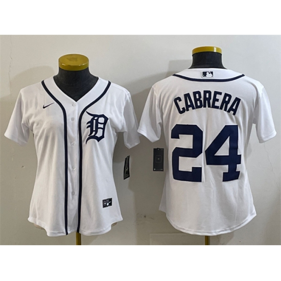 Women's Detroit Tigers #24 Miguel Cabrera White Cool Base Stitched Baseball Jersey(Run Small)